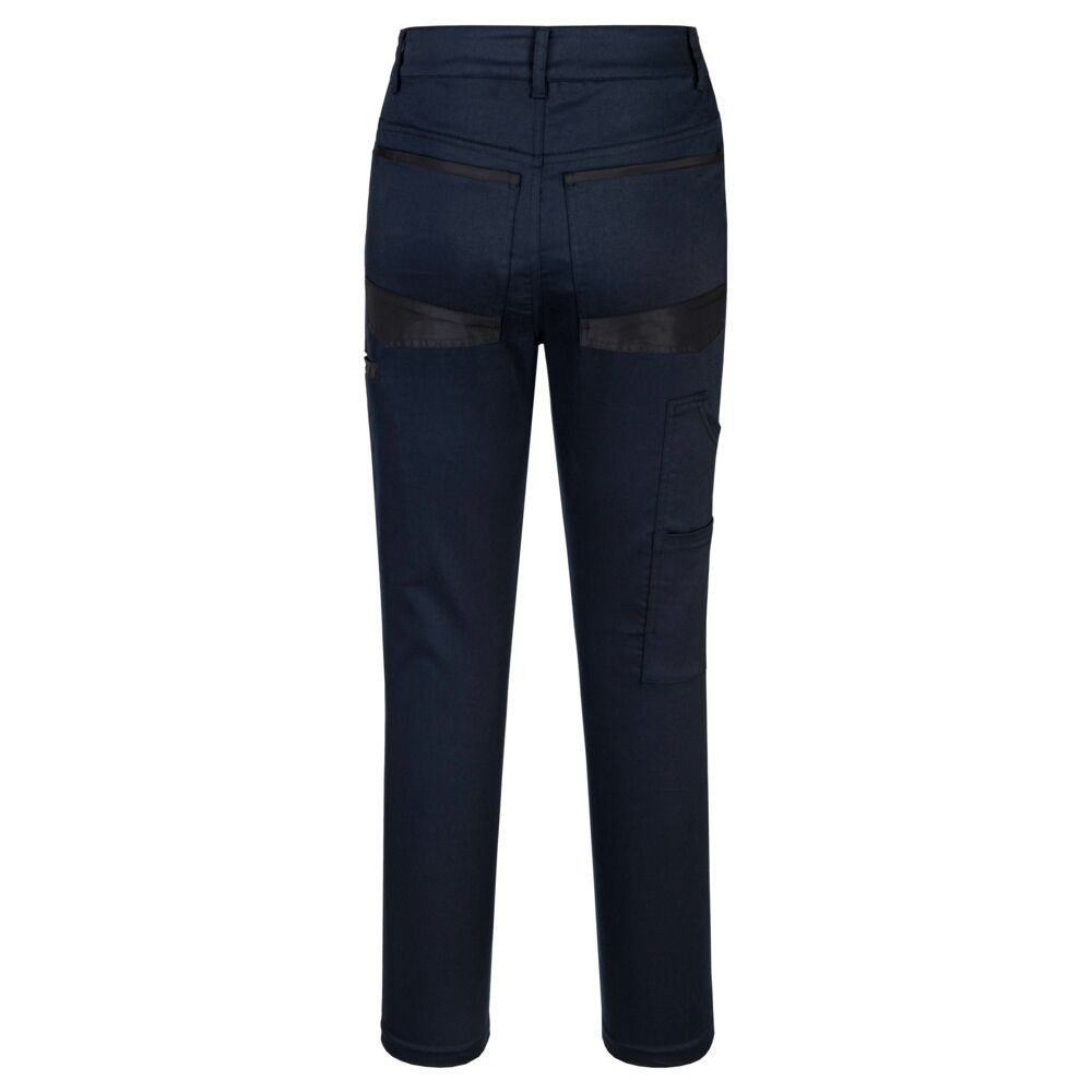 2 irányú twill stretch alapanyaggal, kopásálló oxford poliészterrel, háromszoros varrásokkal, magas derékkal, 6 sokoldalú, praktikus tárolózsebbel, 2 hátsó zsebbel, 2 oldalsó zsebbel és karcsú szabással (sztreccs anyaggal) rendelkező női nadrág.