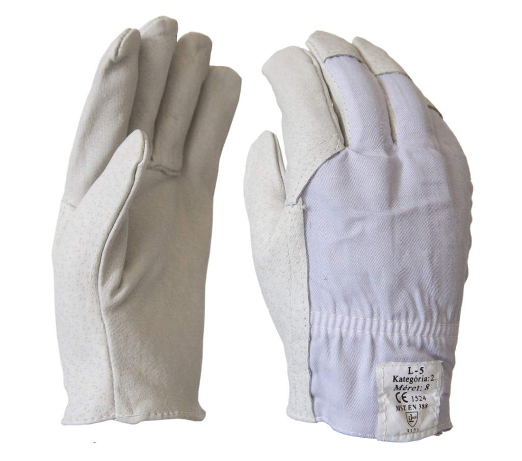 L-5/07 Szürke sertés színbőr sofőrkesztyű vászon kézháttal