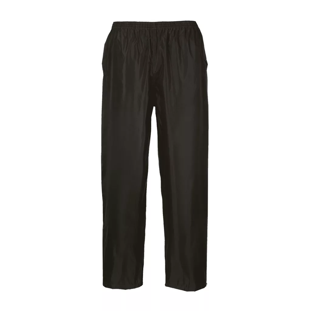 Praktikus és strapabíró 100% poliészter, PVC bevonatú esőnadrág, mely kiváló ár-érték arányt képvisel. Extra védelmet nyújtó ragasztott varrásokkal, gumírozott derékkal, patentos, állítható bokarésszel és extrém vízálló bevonattal rendelkezik. Szabása lehetővé teszi a munkaruha fölött történő viselését is. Oldalsó zsebe könnyű hozzáférést biztosítanak a munkanadrág oldalsó zsebeiben tárolt dolgainkhoz. Az S440 cikkszámú esődzsekivel, vagy S438 cikkszámú esőköpennyel egy szettet alkot.