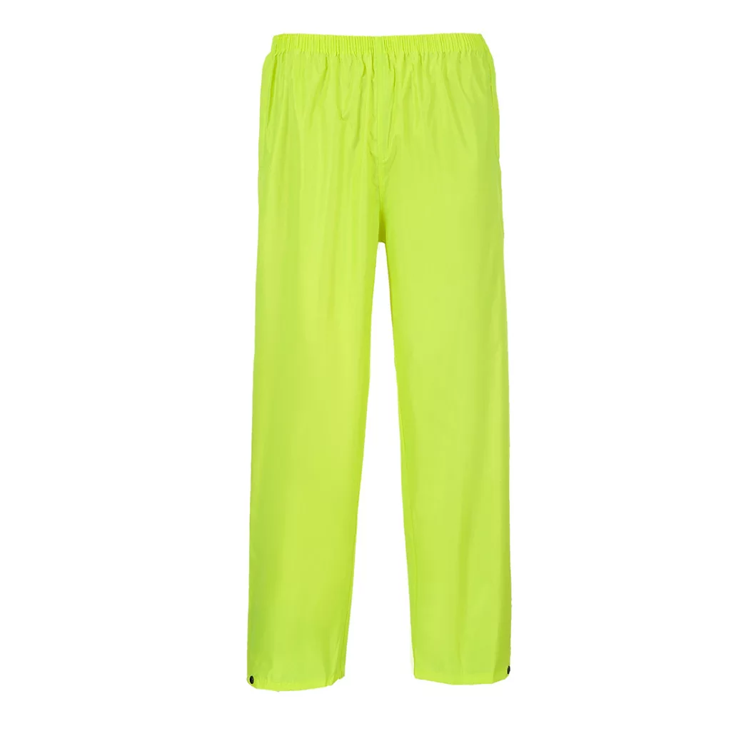 Praktikus és strapabíró 100% poliészter, PVC bevonatú esőnadrág, mely kiváló ár-érték arányt képvisel. Extra védelmet nyújtó ragasztott varrásokkal, gumírozott derékkal, patentos, állítható bokarésszel és extrém vízálló bevonattal rendelkezik. Szabása lehetővé teszi a munkaruha fölött történő viselését is. Oldalsó zsebe könnyű hozzáférést biztosítanak a munkanadrág oldalsó zsebeiben tárolt dolgainkhoz. Az S440 cikkszámú esődzsekivel, vagy S438 cikkszámú esőköpennyel egy szettet alkot.